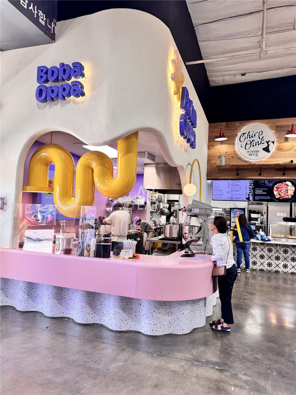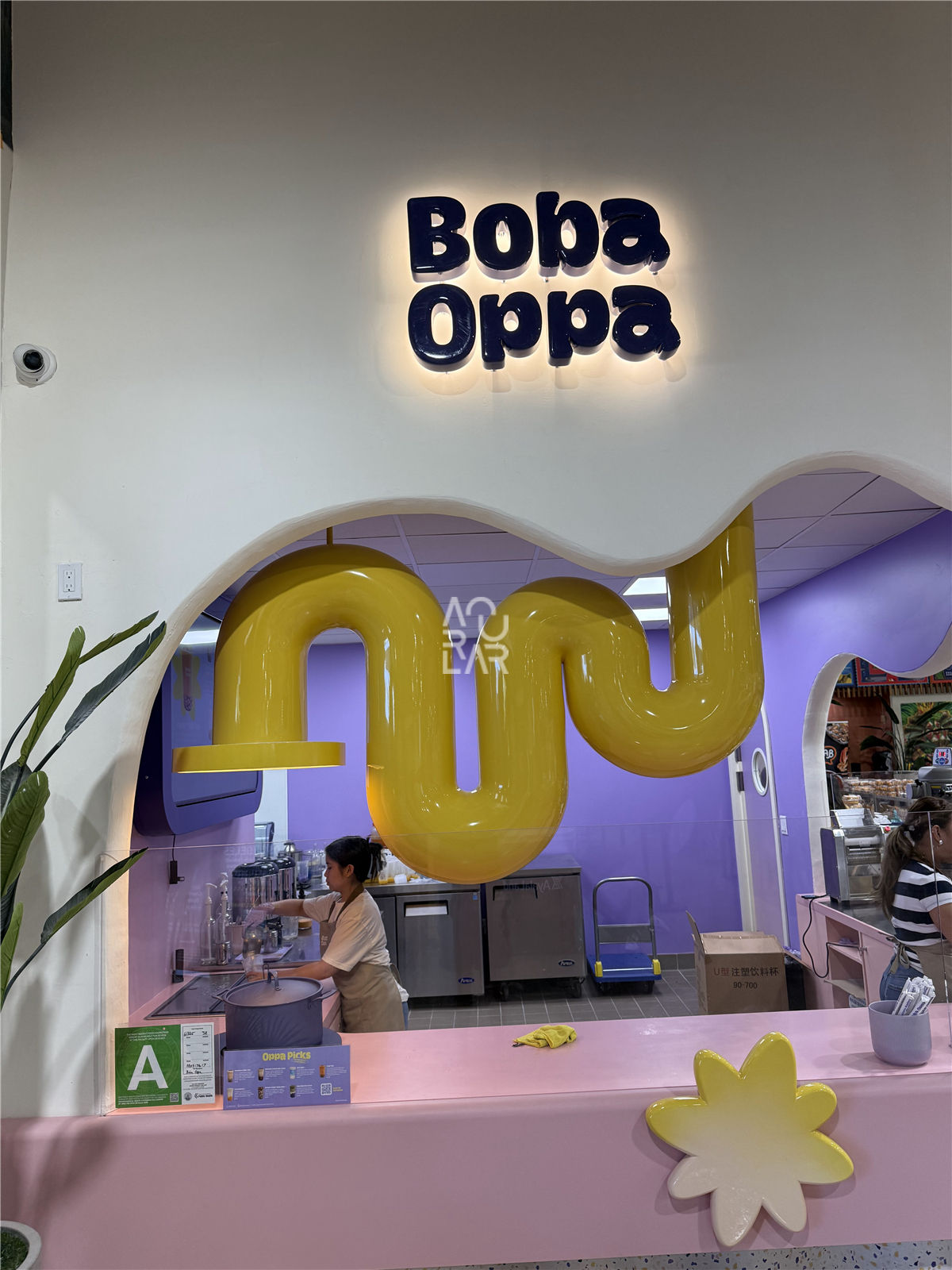 Boba Oppa is a modern beverage retailer specializing in premium bubble tea and innovative fusion drinks, targeting a lifestyle-driven demographic with a vibrant and playful brand identity. Operating as a high-traffic fast-casual service environment, the brand faces specific spatial challenges, primarily the seamless integration of professional brewing machinery and high-capacity refrigeration units into a compact, high-visibility service hub. In such a high-moisture setting, the primary obstacles involve maintaining material uniformity across surfaces that must withstand constant liquid exposure and rigorous sanitation, while optimizing the circulation path to prevent bottlenecks between the digital ordering kiosks and the pickup zone. Furthermore, the space requires a sophisticated storage system that provides high-density organization for various toppings and disposables without disrupting the minimalist, cohesive brand expression.