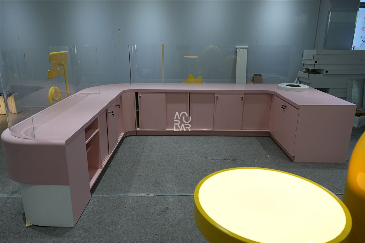 To address these operational requirements, we provided a complete technical solution, starting with design engineering and the development of high-precision shop drawings to define the ergonomic parameters of the preparation zones. Our team conducted a prototyping phase to validate the multi-material integration of stainless steel work surfaces with decorative high-pressure laminates and integrated LED signage. During fixture fabrication, we focused on bespoke service counters and modular back-bar units, specifically engineered with waterproof internal structures and concealed electrical routing for specialized appliances. Every component underwent rigorous quality control and pre-shipment inspection to guarantee finish durability and structural integrity. By overseeing the project from technical development through to final delivery, we transformed the retail floor into an optimized, high-performance environment. The resulting interior features a streamlined layout and an intuitive display logic, providing a significantly more efficient operational workflow for the staff and a professional, unified brand experience for every guest.