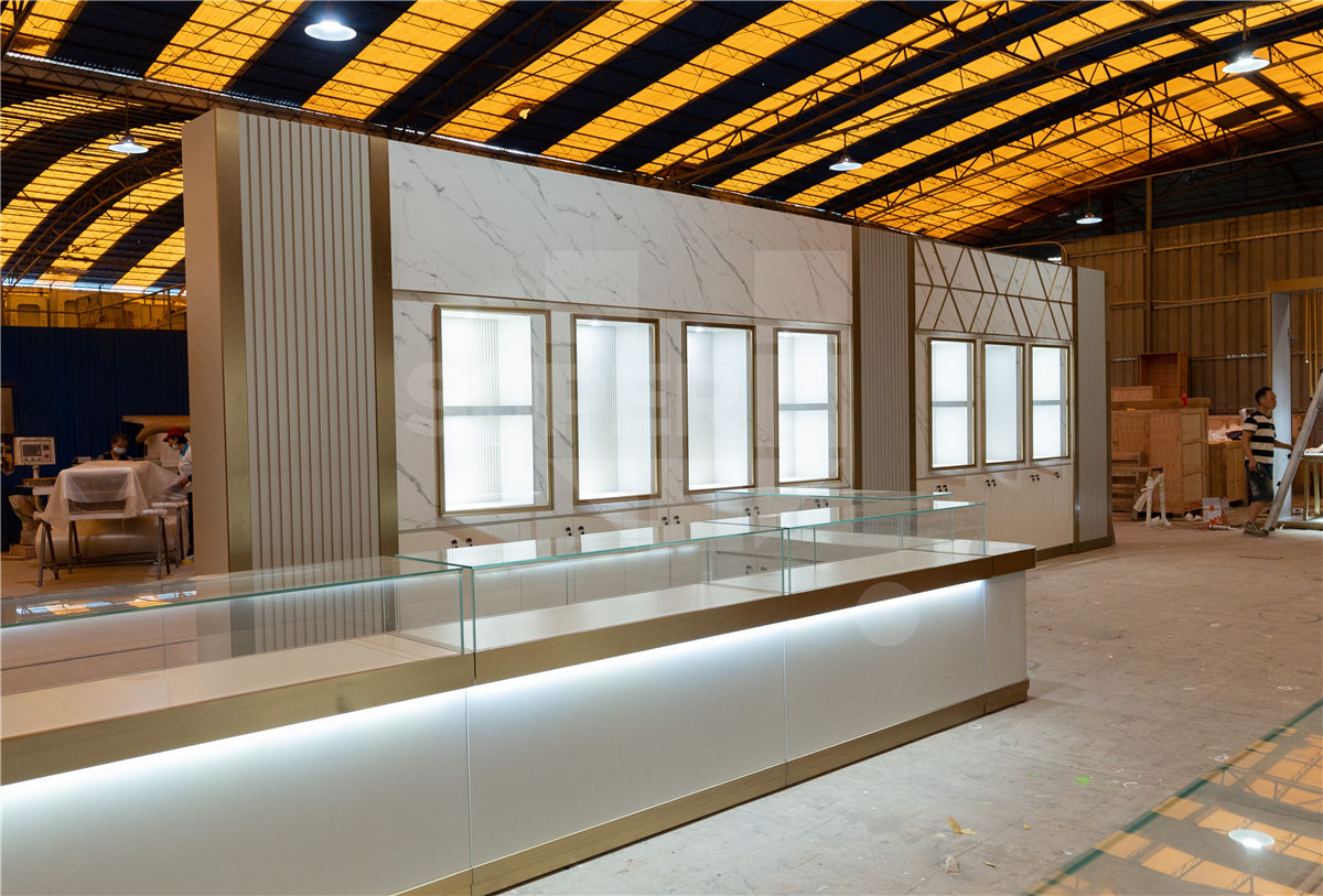 To address these requirements, we provided a comprehensive technical solution, starting with meticulous design engineering and the development of high-precision shop drawings to define the structural parameters of each secure display unit. Our fixture fabrication focused on bespoke jewelry showcases and reinforced wall-mounted cabinets, specifically engineered with integrated high-CRI LED lighting and high-security locking mechanisms. Every component underwent a multi-stage quality control and pre-shipment inspection process to guarantee that the finish durability and aesthetic alignment met the brand’s luxury standards. By managing the project from technical development through to final delivery, we transformed the retail floor into an optimized, high-performance environment. The resulting interior features a streamlined circulation path and a unified material palette, providing a significantly more secure operational workflow for the staff and a cohesive, professional atmosphere for every client.