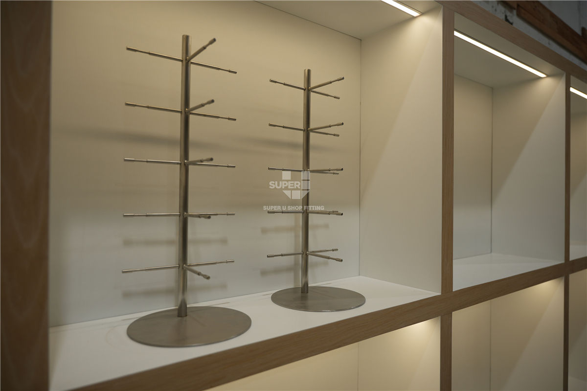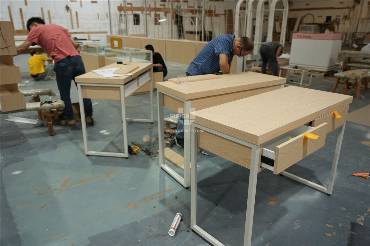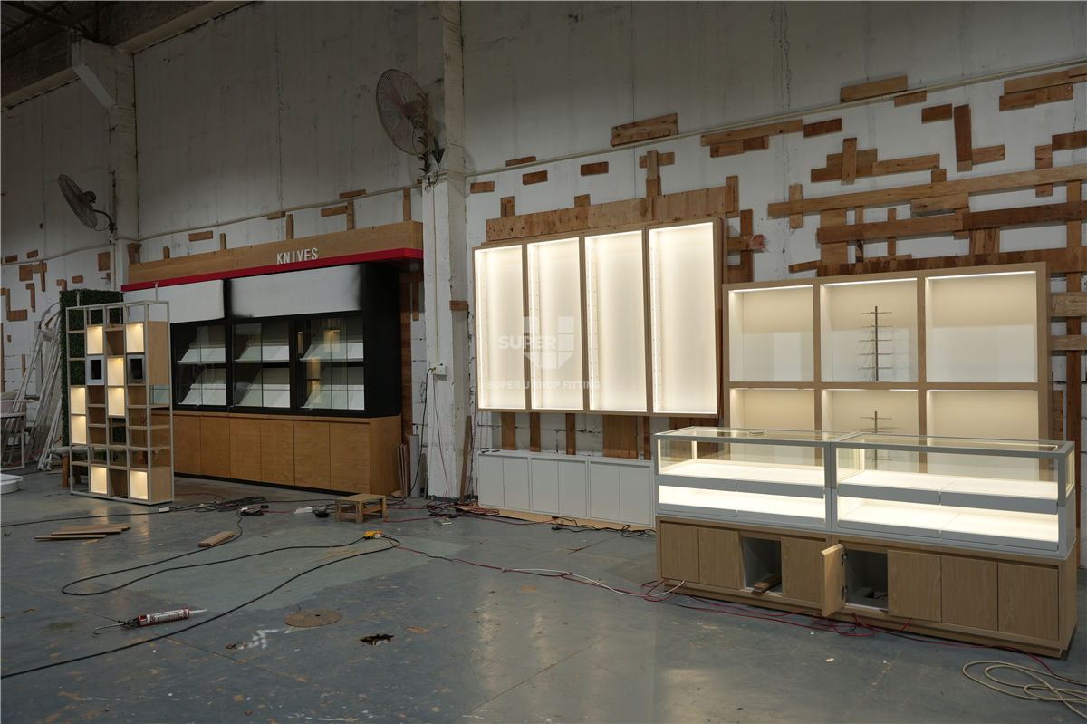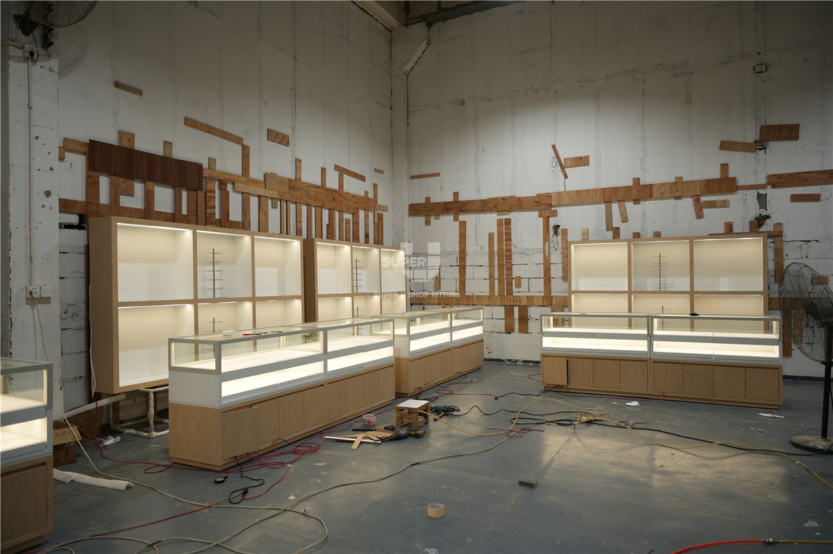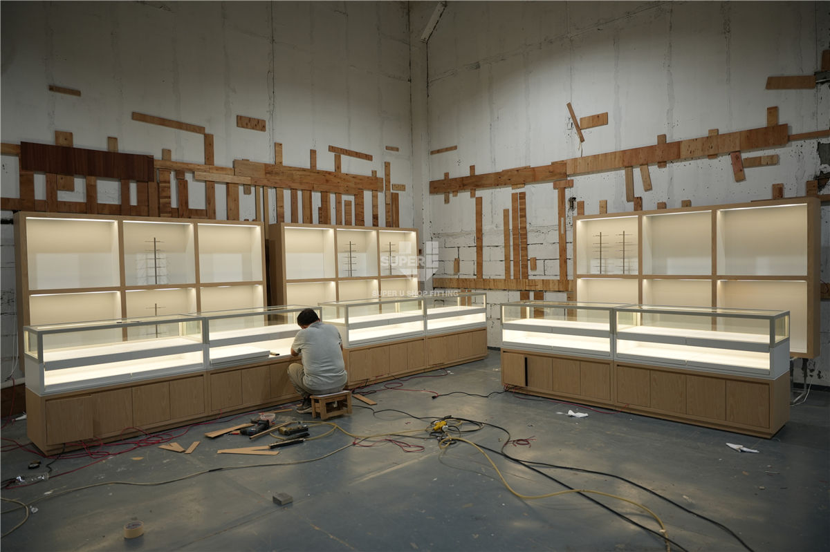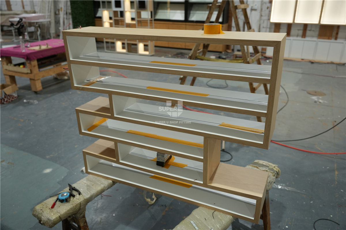To address these requirements, we executed a comprehensive technical solution, starting with design engineering and the development of high-precision shop drawings to ensure the ergonomics of every dispensing station and display unit. Our fixture fabrication focused on modular wall-mounted systems and bespoke illuminated showcases, specifically engineered with integrated LED lighting to enhance product clarity. Each component underwent rigorous quality control and pre-shipment inspection to guarantee that the finish durability and structural integrity met the studio’s professional standards. By overseeing the project from technical development through to final delivery, we transformed the space into an optimized, high-performance environment. The resulting interior features a streamlined circulation path and an intuitive display system, providing an organized, professional experience for patients and a significantly more efficient operational workflow for the optical staff.