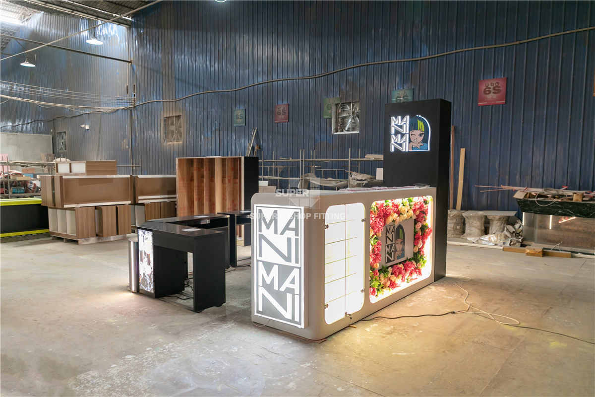 To resolve these complexities, we executed a precise design engineering process, transforming the compact kiosk footprint into a high-performance service hub through detailed shop drawings development. We focused on creating bespoke, ergonomic workstations with integrated dust-collection and ventilation interfaces, ensuring all technical requirements were embedded within the cabinetry. During the fixture fabrication phase, we utilized moisture-resistant materials and specialized coatings to ensure long-term durability in a salon environment. Our team conducted stringent quality control and multi-stage inspections to guarantee seamless jointing and hardware precision before final delivery. By optimizing the internal display logic and storage density, we provided Mani Mani with a modular, high-efficiency space that ensures a unified brand identity across small-scale environments. The resulting kiosk achieves a sophisticated balance between technical functionality and inviting hospitality, facilitating a superior service experience within a streamlined operational layout.