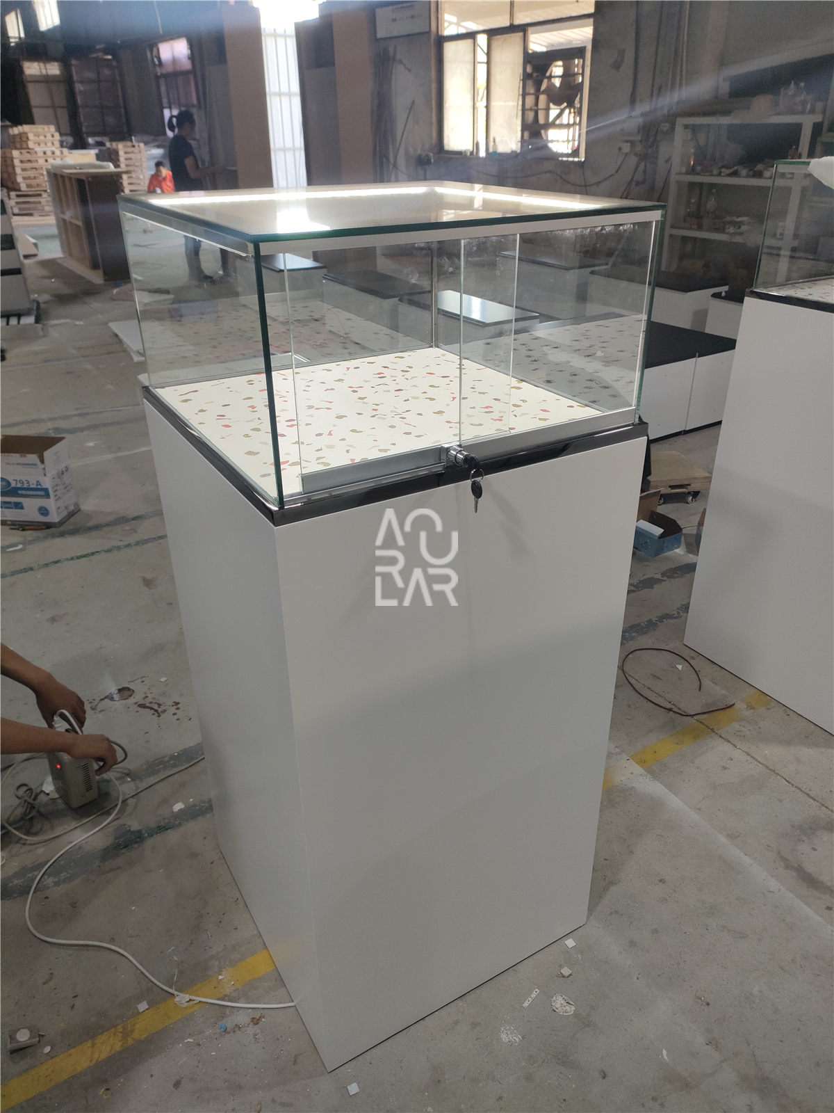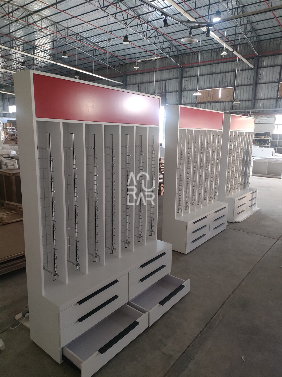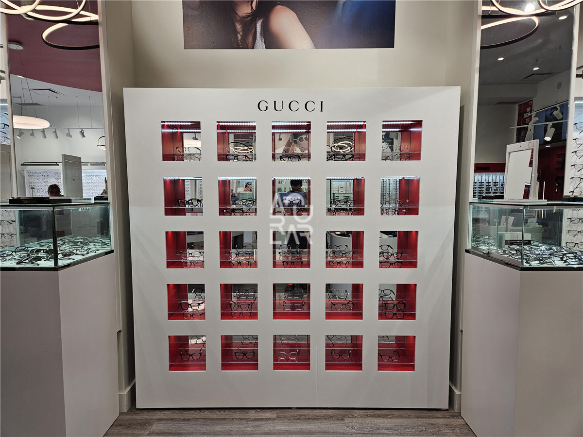 To address these technical requirements, we provided a comprehensive furniture solution, beginning with meticulous design engineering and the development of high-precision shop drawings to ensure the ergonomic alignment of the dispensing desks and display units. Our fixture fabrication focused on bespoke, wall-mounted eyewear showcases and modular center-floor pedestals, specifically engineered with integrated LED strips and security-grade tempered glass. Every component underwent a multi-stage quality control and pre-shipment inspection process to guarantee that the finish durability and aesthetic alignment met the brand’s high standards. By managing the project from technical development through to final delivery, we transformed the space into an optimized, high-performance environment. The resulting interior features a streamlined layout and an intuitive display system, providing a significantly more efficient operational workflow for the opticians and a cohesive, professional shopping experience for every patient.