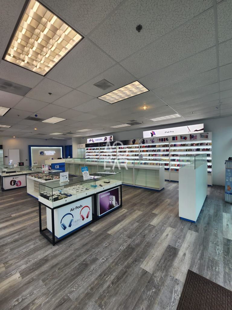 Universal Phones is a comprehensive electronics retailer and service provider specializing in mobile devices, premium accessories, and professional repair services. Operating in a fast-paced retail environment, the brand requires a spatial layout that seamlessly integrates high-visibility product showcasing with a functional service hub. The primary spatial challenges for a high-traffic electronics store involve optimizing the display logic for a vast array of small-scale accessories while maintaining secure, high-density storage for valuable device inventory. Furthermore, integrating concealed cable management systems within the furniture is essential to support live demo units without compromising a clean, minimalist aesthetic. Ensuring material uniformity across modular fixtures is also critical to maintaining a professional brand expression that withstands the high-wear nature of a technical service environment.