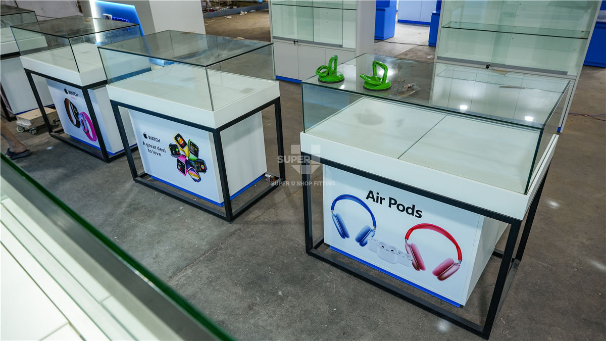 To address these requirements, we executed a complete technical solution beginning with meticulous design engineering and the development of high-precision shop drawings to define the structural and ergonomic parameters of each unit. Our fixture fabrication focused on modular display systems and bespoke service counters, specifically engineered with integrated power routing and secure storage modules. Every component underwent rigorous quality control and pre-shipment inspection to ensure finish durability and structural integrity. By overseeing the project from engineering through to final delivery, we transformed the retail floor into an optimized, high-performance environment. The final result features a streamlined circulation path and an intuitive display system, allowing for an organized product presentation and a more efficient workflow for the service staff, ultimately providing a cohesive and professional experience for every customer.